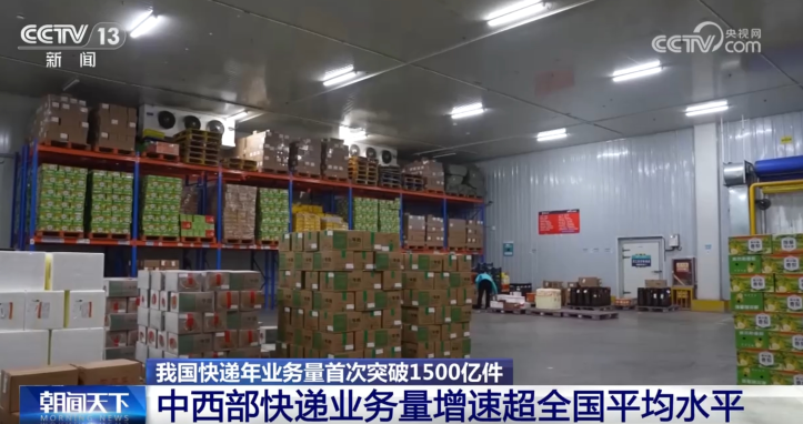 央视网消息:记者从国家邮政局获悉,截至11月17日,我国快递年业务量首次突破1500亿件。数据显示,今年以来,我国年人均收快递超100件,平均每秒产生5400多件快件,最高日业务量超7.29亿件。