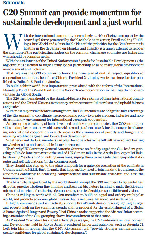 原文标题:G20 Summit can provide momentum for sustainable development and a just world