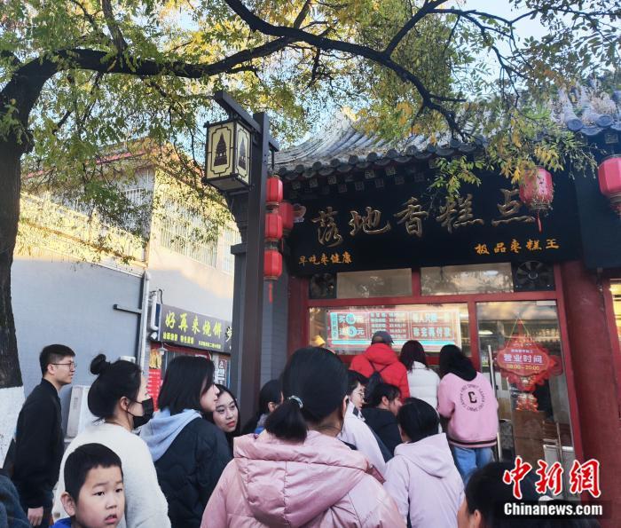 渔阳古街上,游客正排队购买一家“网红”枣糕。刘越 摄