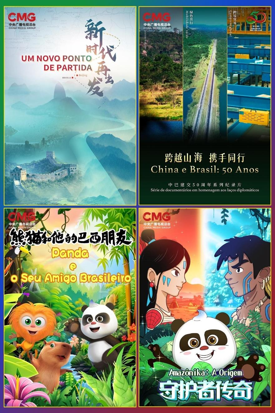 庆祝中巴建交50周年的精品节目片单在活动上发布。由中央广播电视总台精心制作的两部纪录片《新时代 再出发》《跨越山海 携手同行》全景呈现中国与巴西携手共进、团结合作的丰硕成果,展望新时代中巴关系迈入下一个“黄金50年”的新图景。系列动画片《熊猫和他的巴西朋友》、动画电影《守护者传奇》以生动有趣的动画故事,传递中巴两国携手守护自然、关爱生命的生态理念。