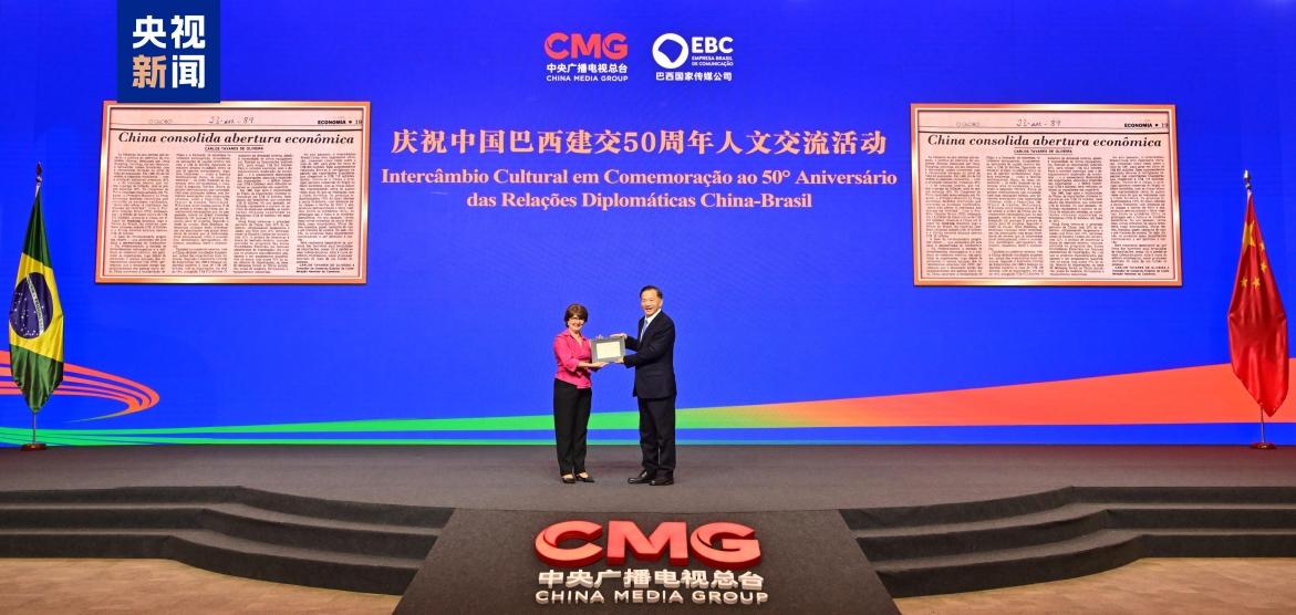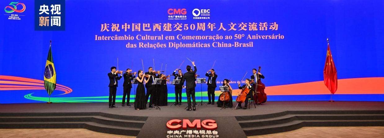 在中国国家主席习近平出席二十国集团领导人第十九次峰会并对巴西进行国事访问之际,当地时间11月20日,中国中央广播电视总台与巴西国家传媒公司联合主办的庆祝中巴建交50周年人文交流活动在巴西利亚举行。巴西总统卢拉向活动发来贺信。包括巴西副总统兼发展、工业与贸易部长阿尔克明,巴西总统府机构关系部部长帕迪利亚,巴西总统府新闻事务部部长皮门塔,巴西文化部长梅内塞斯,巴西旅游部执行部长洛佩斯,巴西国家传媒公司总裁利马等在内的巴西政界、经济界、文化界、学界、媒体等两百余名嘉宾出席活动。