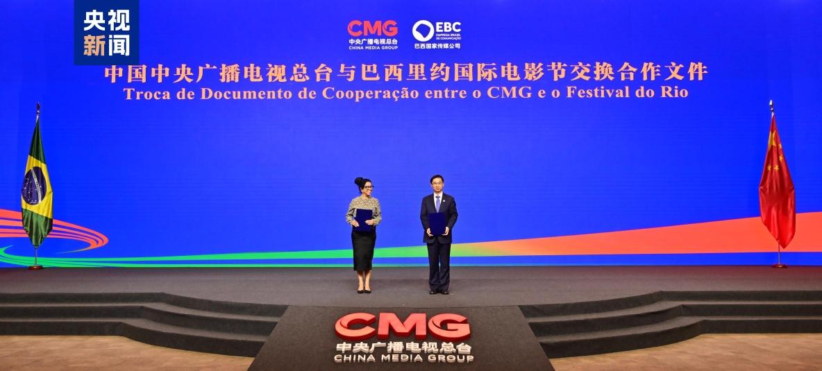 在习近平主席对巴西进行国事访问之际,中央广播电视总台与巴西文化部、巴西总统府新闻事务部、巴西国家传媒公司、巴西农业和畜牧业联合会分别签署合作文件。四项合作文件均被纳入习近平主席访巴成果文件清单。活动上,总台与里约国际电影节交换合作文件,进一步深化中巴电影文化交流。