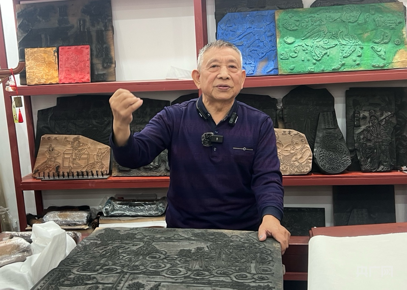 霍庆顺展示年画技艺(央广网发 实习记者 马雪晴 摄)