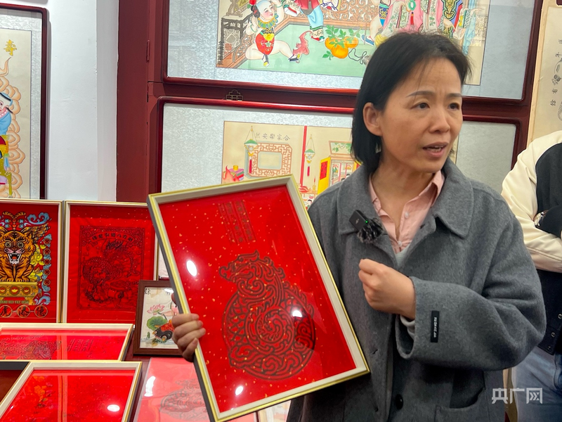 张宏展示属相新年画(央广网发 实习记者 马雪晴 摄)