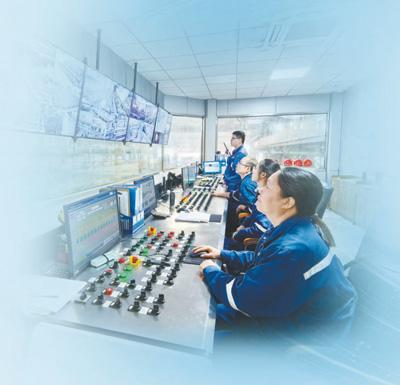 新长江集团旗下江阴市金属制管厂自动化生产线操作室,工人正在监督设施运行,确保安全环保。受访者供图