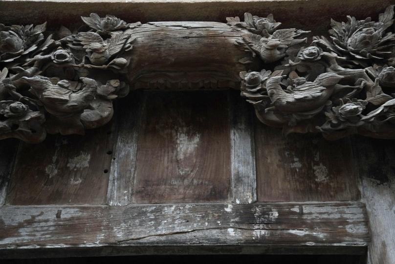釜山村有深厚的历史文化资源,图为村内一处木雕。澎湃新闻记者 王珏玮 图
