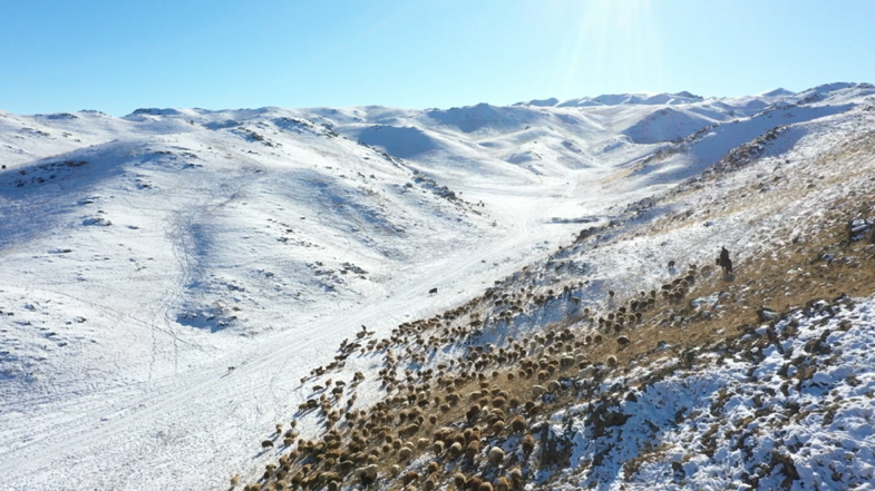 吉木乃县别斯铁热克乡加勒格孜喀拉尕依村村民阿扎提·吐斯普汗说:“每年十一月底,我们便开始了冬季的转场之旅,从春秋牧场转场至温暖的冬窝子。为确保在大雪降临之前安全抵达,我们精心准备了充足的饲草料,并确保了牲畜们拥有舒适的栖息场所。”