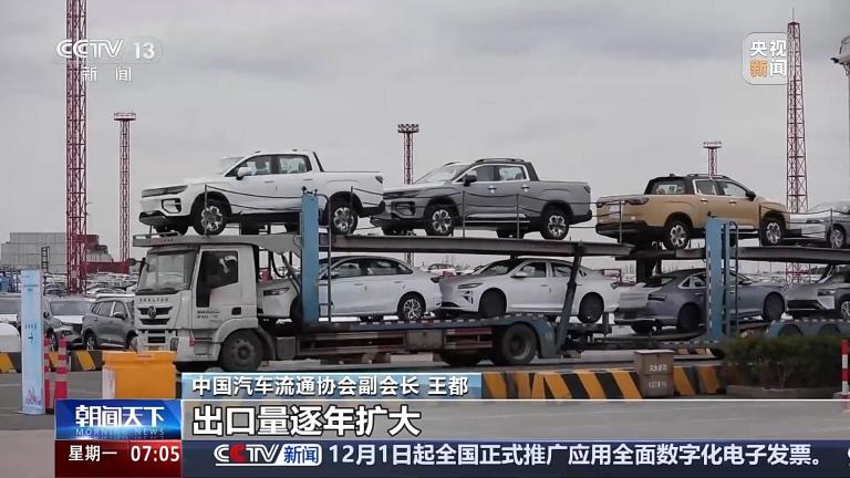 广州某二手车经销商:“以旧换新”补贴之后,让我们车源更加丰富。同样的品质,在我们中国大概一台7万块钱的新能源汽车,到国外可以卖到36000多美金。