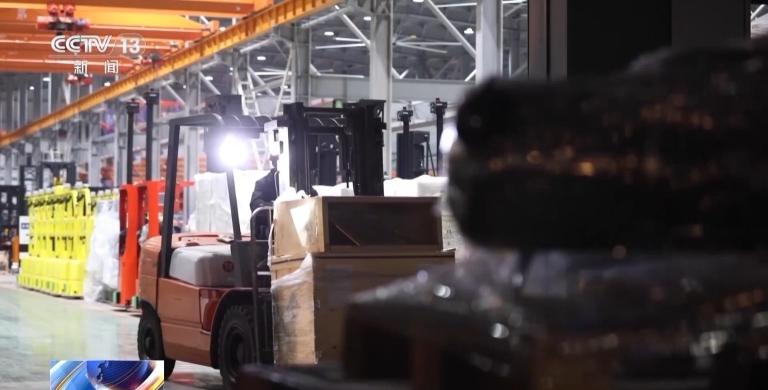 夜里两点,安徽合肥的这家叉车生产企业,发货区里依然熙来攘往,五辆卡车依次排队,上百吨货物等待出发。