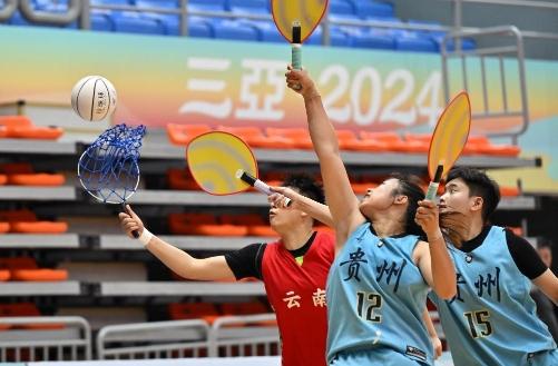 碧海蓝天间,陵水黎安国际教育创新试验区滨海体育场连日来人声鼎沸。花炮赛场上,进攻方努力通过传递、掩护以摆脱防守得分;防守方积极追赶、拦截以阻止对方前进。看台上,观众热情高涨,锣鼓声、欢呼声不断。