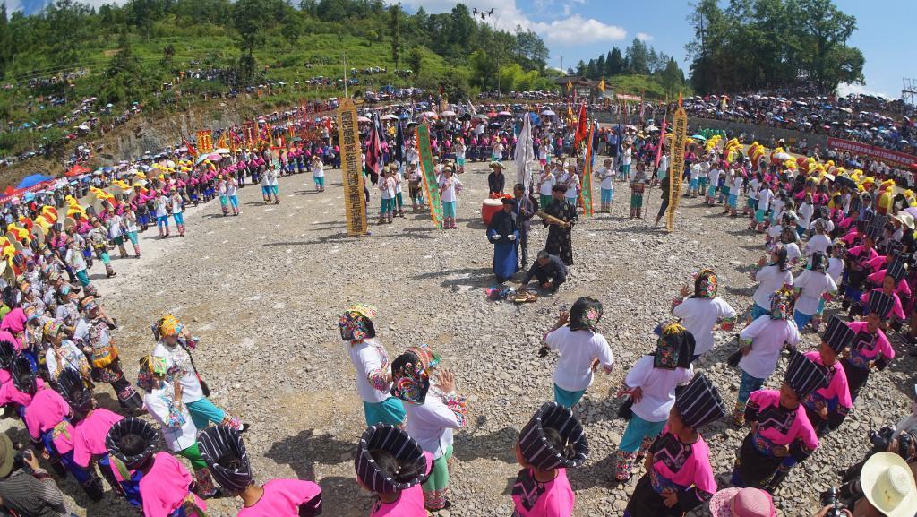 十八洞村摆起长龙宴欢庆苗年(2019年1月17日摄)。新华社记者 薛宇舸 摄