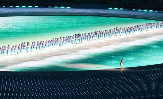 主创团队借助灯光设计、特殊装置等,利用激光反射、折射原理,献上一场“会呼吸”的光影盛宴,将空间有限的体育场打造成浩瀚星海,让观众彻底沉浸其中。开幕式上绚烂的电子烟花、节目演绎中的“山河海”等场景,无不在科技助力下实现。