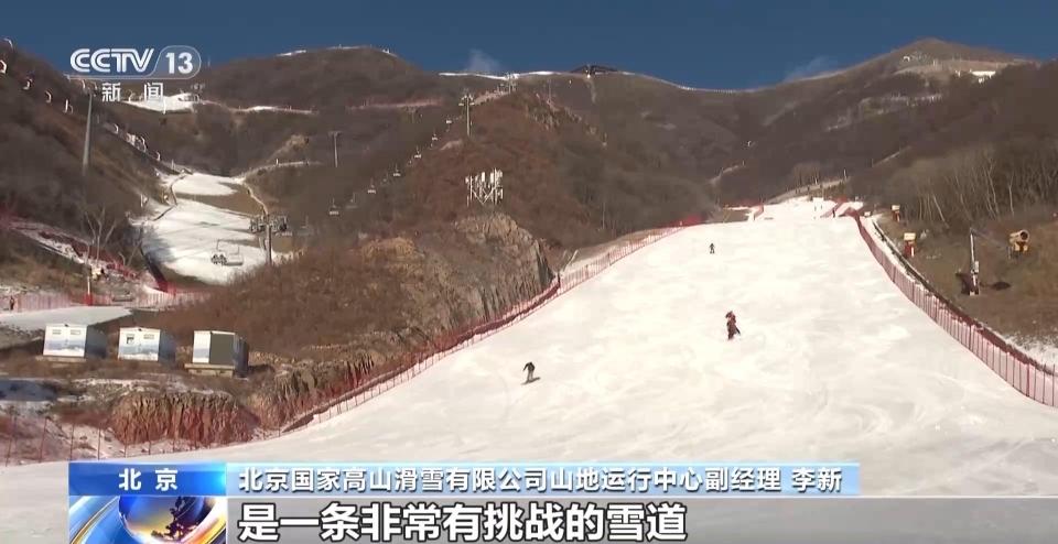北京国家高山滑雪有限公司山地运行中心副经理 李新:我们将在12月份首次开放这条长度2163米、最大坡度达到64%的冬奥滑降雪道——瑞雪大道,这是一条非常有挑战的雪道。