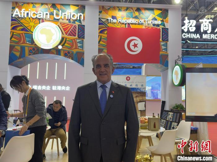 11月26日,突尼斯驻华大使阿迪勒·阿拉比在第二届链博会期间接受采访。官逸伦 摄