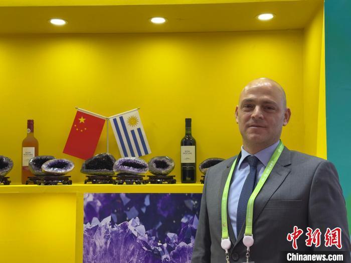 奥兰多已是第二次参加链博会。这一次,乌拉圭带来了红酒、牛奶、紫水晶等产品参展。