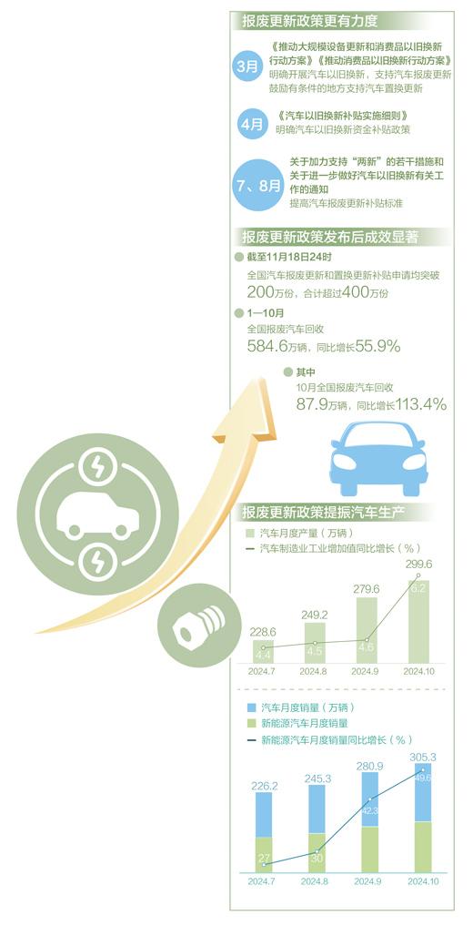 政策激发了消费者以旧换新热情,也让中再生这样的报废汽车回收拆解企业生产线更加忙碌。中再生报废汽车事业部副经理王功献介绍,截至11月上旬,中再生共收购报废机动车1万余辆,与去年同期相比增长近七成。