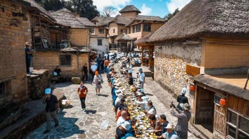 阿者科村的哈尼长街宴。新华社发