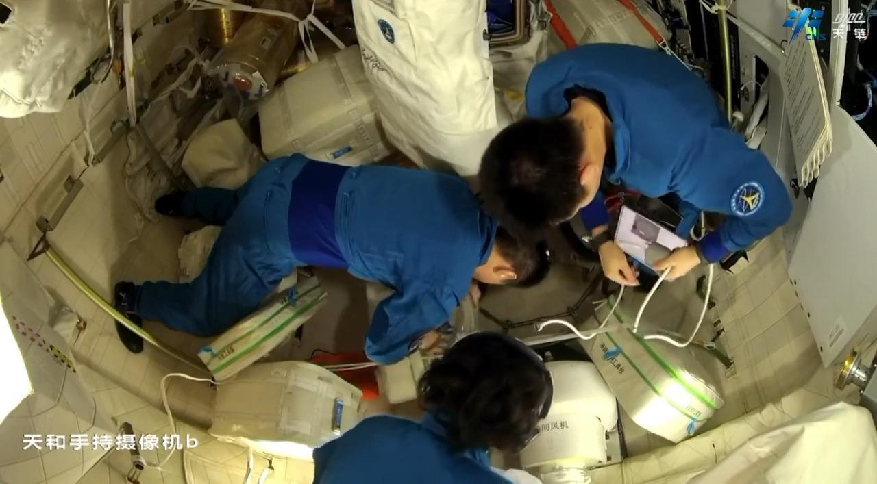 此外,乘组还在轨开展了舱外航天服电池测试、巡检测试等工作。