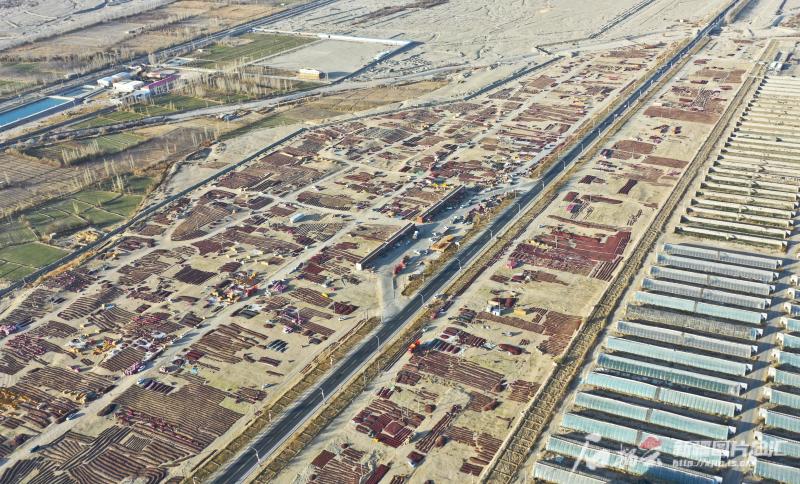 315国道策勒县段两侧的千亩红枣晾晒场(11月29日无人机摄)。