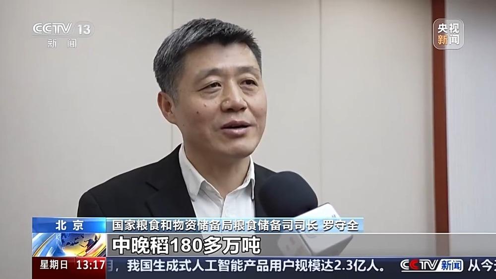 国家粮食和物资储备局粮食储备司司长 罗守全:目前累计收购最低收购价中晚稻180多万吨,有效稳定了市场预期,发挥了政策托底作用。
