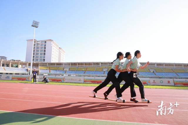 “板鞋竞速考验选手的合作能力。” 广东代表团板鞋竞速项目副队长黄鑫说,队友要充分信任、齐心协力、步调一致才能获得胜利。