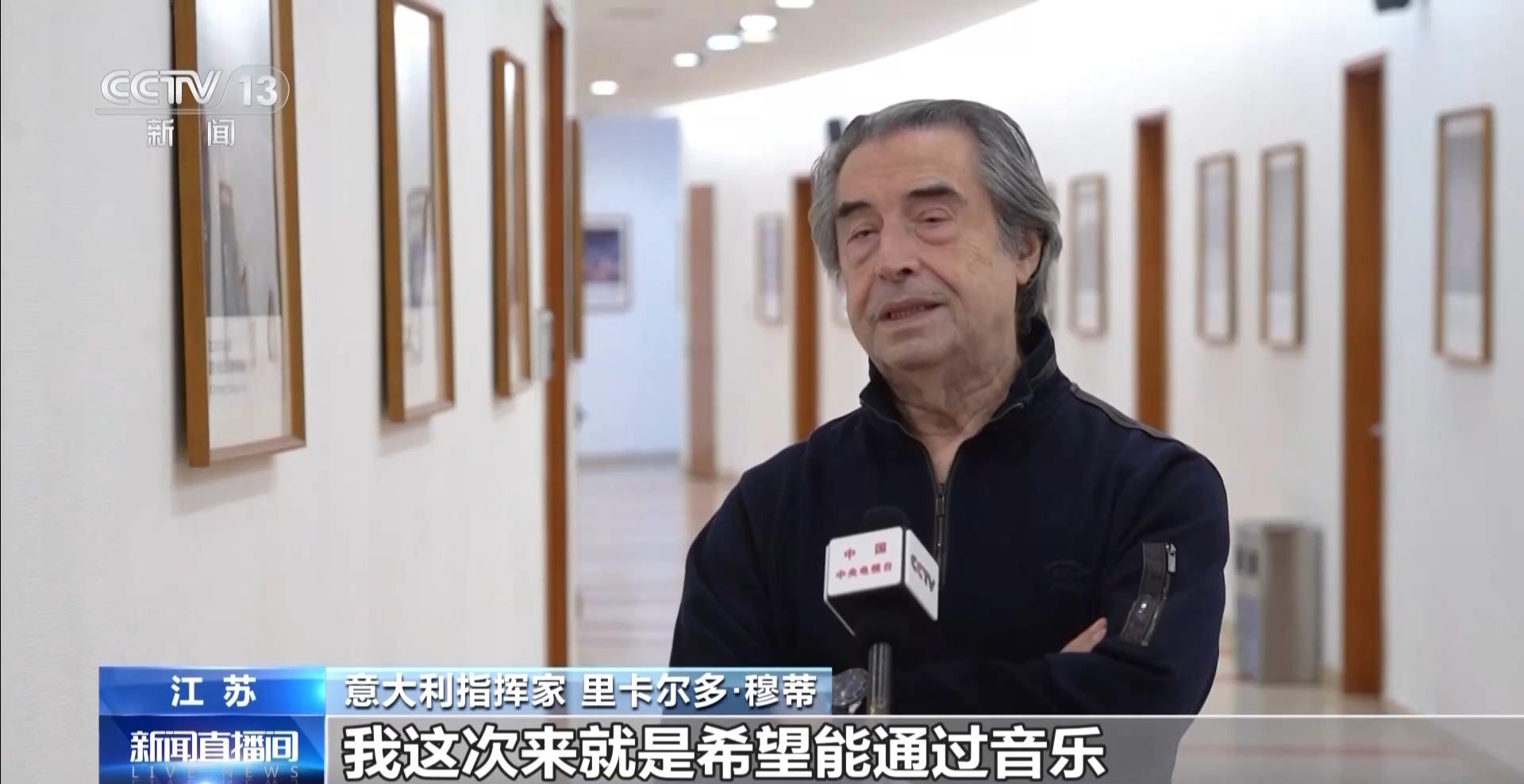 意大利指挥家 里卡尔多·穆蒂:我这次来,就是希望能通过音乐增进中国和意大利之间的感情,我们共同拥有着悠久的历史文化,通过这样的文化交往活动,也让我们两个国家更好地理解彼此。