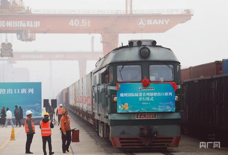 1月16日,赣州国际陆港开行首列脐橙出口班列(央广网发 杨晓明 摄)
