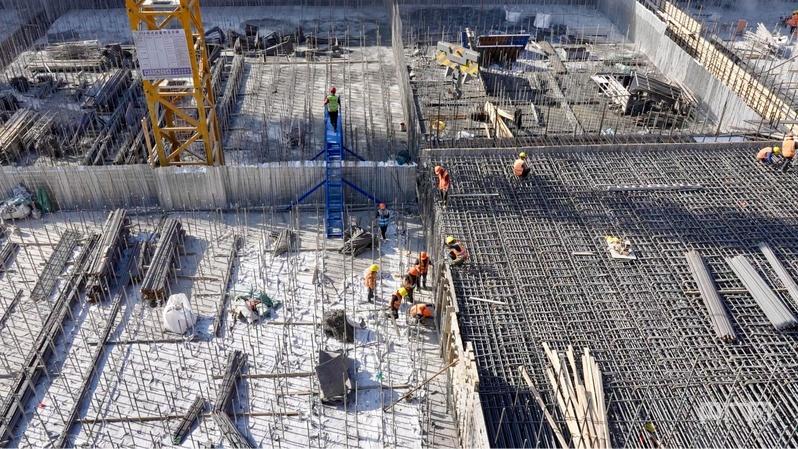 在平陆运河马道枢纽,施工人员正在作业中(央广网记者 王综鹤 摄)