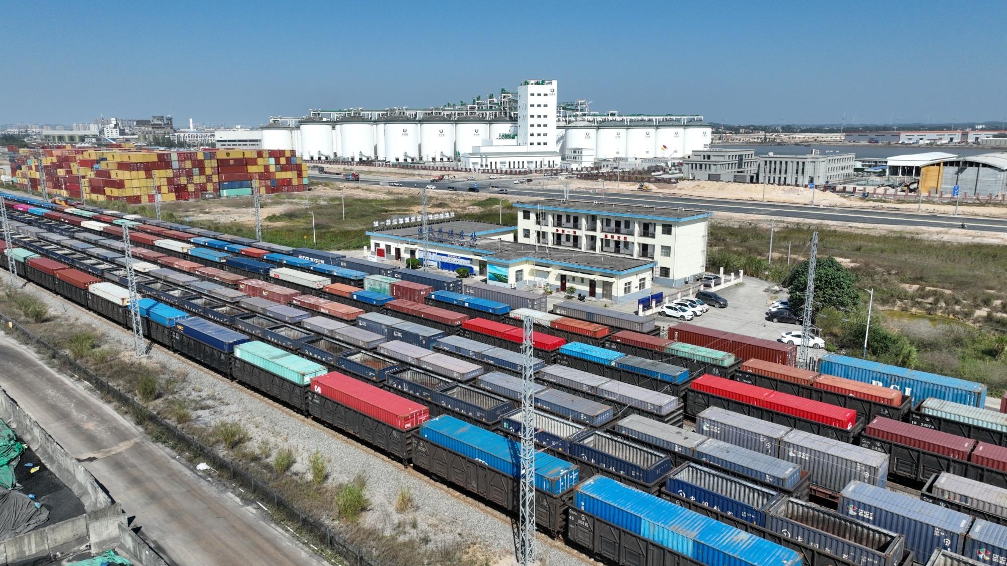 在钦州港东站,不时有海铁联运班列抵达或者驶离,东南亚国家的水果、橡胶、起酥油、纸浆由此进入我国;国产的汽车配件、摩托车散件、发电机配件则一路南下,出口至东南亚。