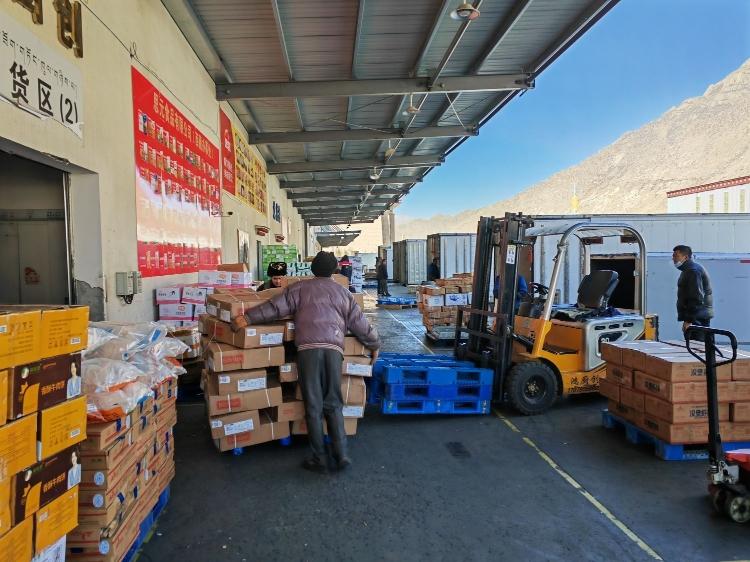 记者了解到,物流港每天配送到西藏各地的物资超过400吨。“青藏线是西藏的生命线,我们最远的货源是在5000多公里外的黑龙江齐齐哈尔。”杨显庆说。