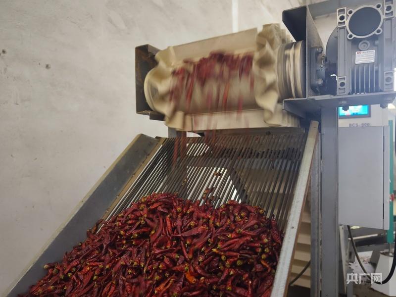 生产车间内辣椒正在进行机械化处理(央广网记者 栾小琳 摄)