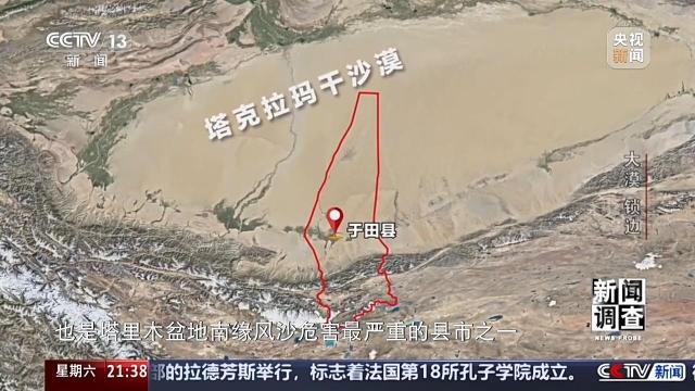 中国科学院新疆生态与地理研究所荒漠与绿洲生态国家重点实验室主任 陈亚宁:整个塔克拉玛干沙漠边缘的周长3046公里,那其中有285公里空白区需要锁边。在这285公里中,和田地区就有220公里,那为什么这么多年防沙治沙生态建设都没有做完,为什么还剩下这285公里呢?因为这285公里的空白区大多位于这个风线、风口、风沙路径区,治沙难度非常大,而且水资源也匮乏,所以在这一块地区这个锁边难度是非常之大的。