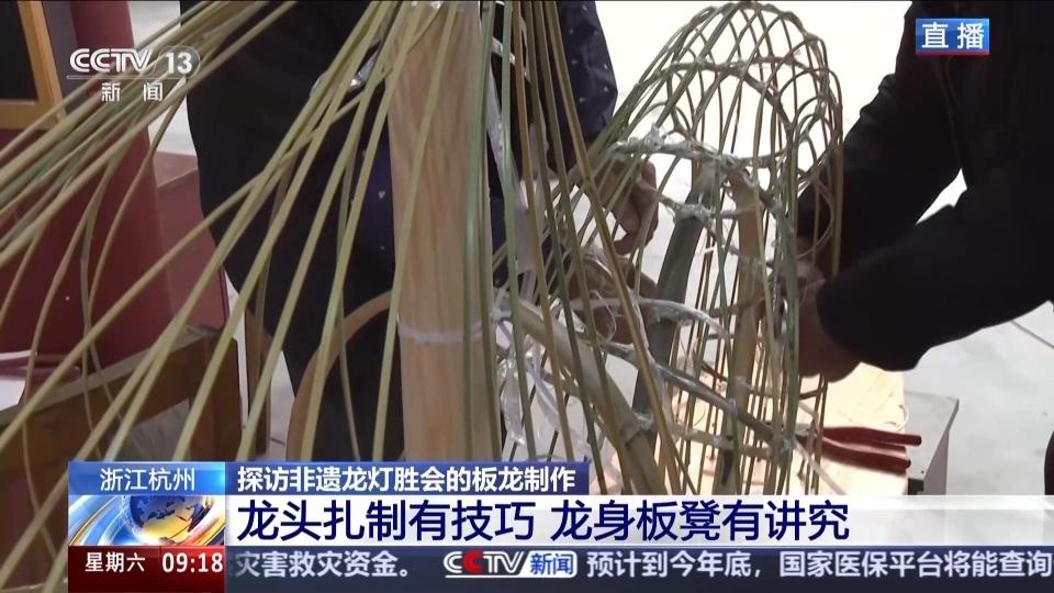 总台记者 夏周:现在我在河上镇溪头村的傅氏宗祠,这里就是河上板龙的生产车间,非遗技艺制作人正在纯手工制作当中。而且今年的制作时间从11月初就开始了,相较往年提前了一个半月。