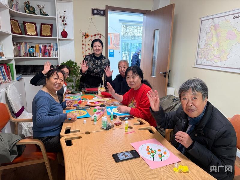 老人们在社区食堂做手工(央广网实习记者 张錾节 摄)