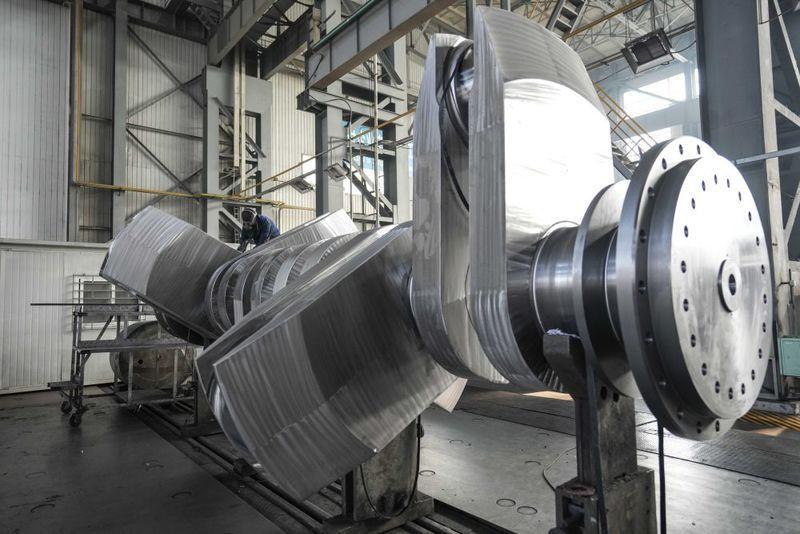 2024年1月11日,工人在大连华锐船用曲轴有限公司加工车间加工产品。新华社记者 潘昱龙 摄
