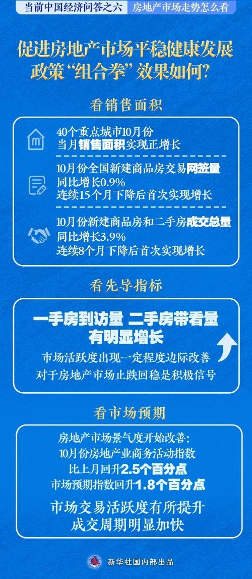 “总的来看,一揽子促进房地产市场止跌回稳的措施显效,10月份房地产市场出现积极变化。随着各项政策效能进一步释放,推动房地产市场止跌回稳的动能将增强。”
