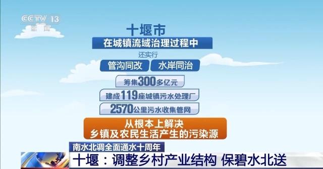 十堰市在城镇流域治理过程中,还实行管沟同改、水岸同治,筹集300多亿元,建成119座城镇污水处理厂和2570公里污水收集管网,从根本上解决了乡镇及农民生活产生的污染源。