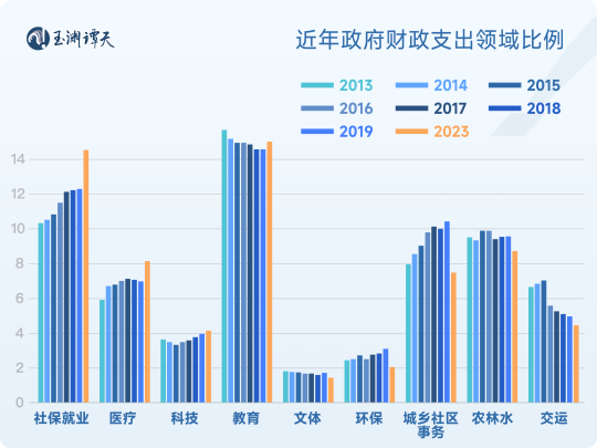 统计数据显示,近年来,我们的财政支出结构已经变得更加有针对性,定向投资绿色经济、民生领域、高技术等有利于民的行业。在去年的财政支出结构中,社保就业、教育这类民生领域一直占据大头。其中,社保就业、医疗的财政投入涨幅远超其他类目。
