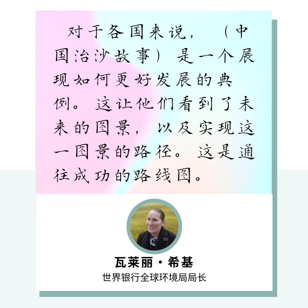 “我想赞扬中国政府在全球范围内应对荒漠化方面的领导力”
