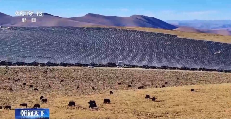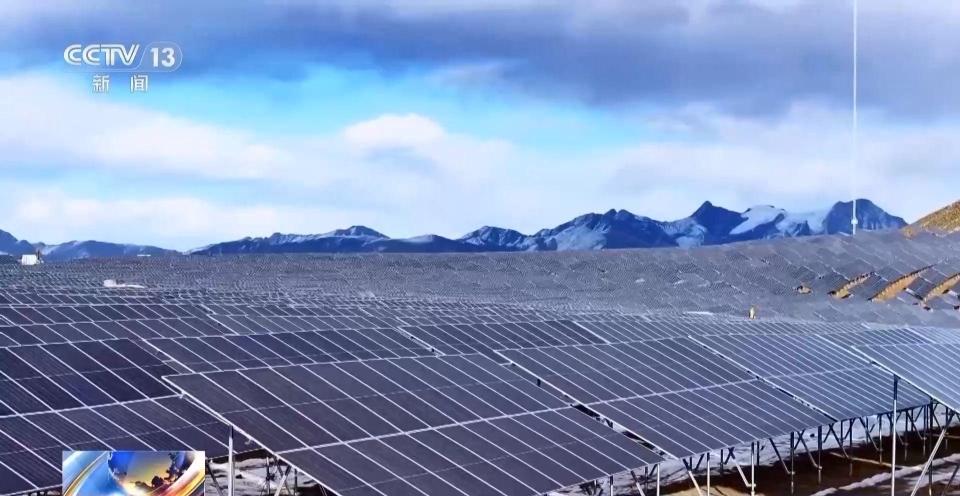 总台央视记者 古峻岭:整个光伏电站一共有25万块光伏板,从空中俯瞰,就像是世界屋脊上的一片蓝色光伏海,迎接着每天的第一缕阳光,把它转化成绿色的电能送往千家万户。