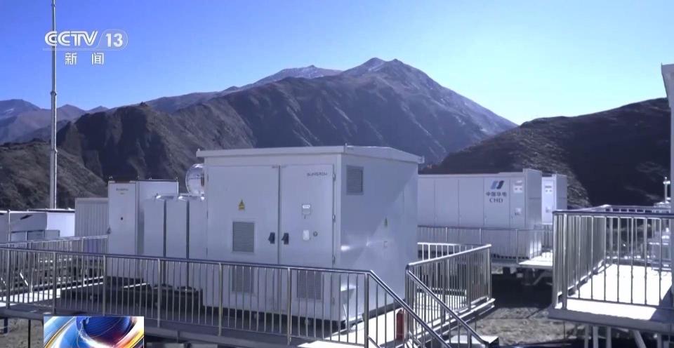 总台央视记者 古峻岭:这16个白色的巨大箱体,就是才朋光伏电站的储能系统。它就像是巨大的“充电宝”。白天光伏收集的这些太阳能,转化成电能后就存储在这里,夜晚还能够稳定地为电网送电。由于它采用了新型的构网型储能技术,也使得它不仅仅具有“充电宝”的功能,还能够在电网发生波动的时候,发挥稳压和调频的作用,确保电网的稳定和安全。