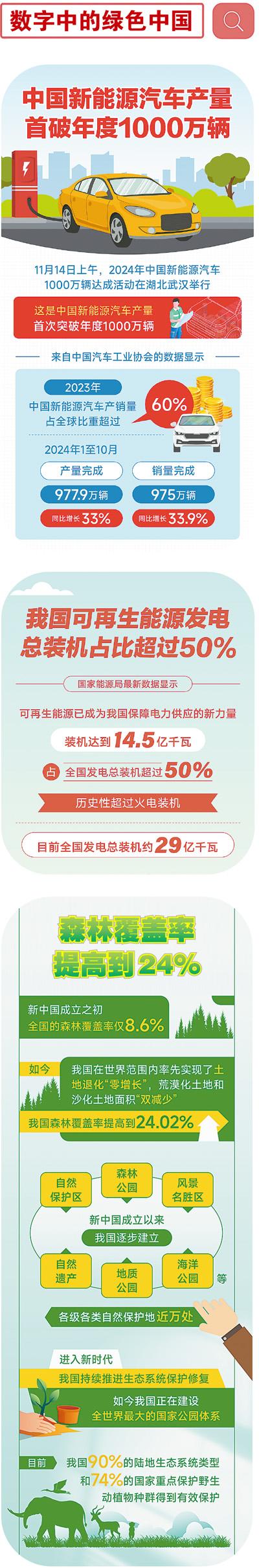 绿色低碳经济快速发展、制造业绿色化转型加速、电动汽车销往全球、生态环境进一步改善、应对气候变化行动不断开展、参与全球绿色合作更加积极……从翔实数据到生动案例,从中国经济到全球合作,中国绿色发展故事在外媒笔下徐徐展开。2024年,中国加快经济社会发展全面绿色转型的步伐更加坚定,绿意盎然的中国为全球绿色发展储蓄更多“绿能”。