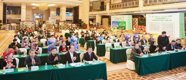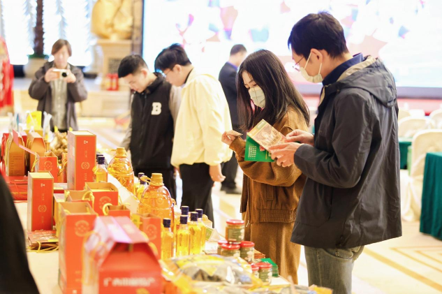 参会嘉宾驻足了解田林农特产品 供图 百色市田林县农业农村局