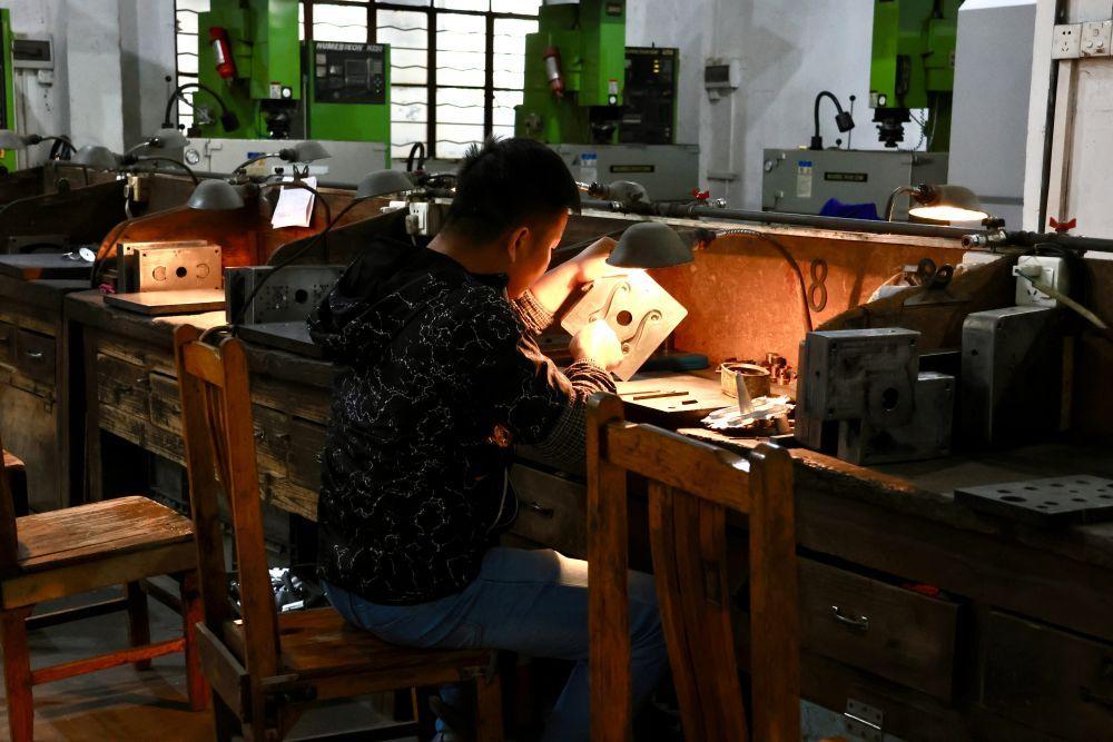 12月6日,华锋制锁有限公司的工人在进行模具抛光工作。新华社记者 钟焯 摄