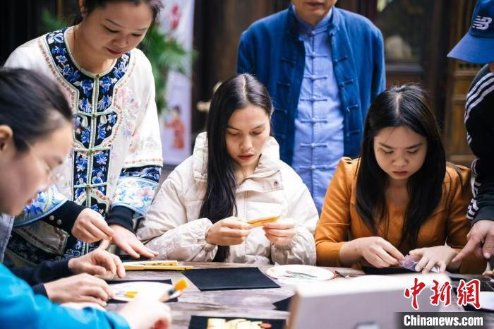 岳阳职院留学生学习非遗手工制作芦苇画。李瑾轩 摄