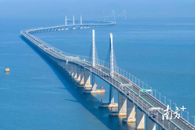 伶仃洋海天一色,港珠澳大桥跨海屹立。港珠澳大桥自2018年正式开通以来,已成为澳门居民自驾到珠三角工作、游玩的“黄金通道”。