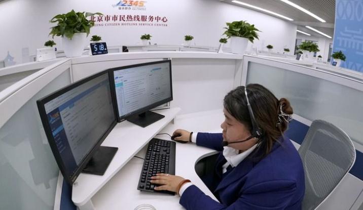12月15日,24小时工作制的北京市市民热线服务中心。新华社记者李欣摄