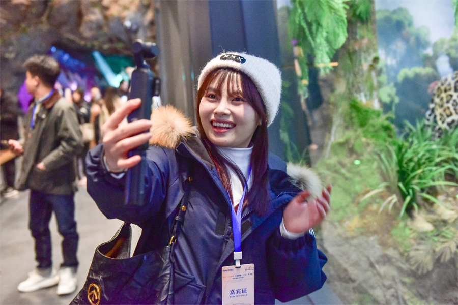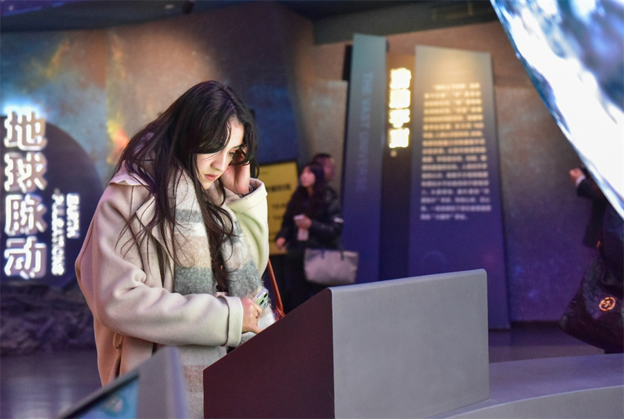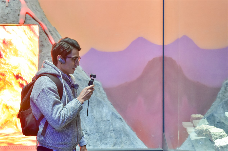 观众在博物馆里通过交互体验,可以直观看到古哺乳动物从原始到现代的演化过程,见证鱼类从水生到陆生的转变,现代科技手段将古生物形态与数字化相结合,让冰冷的化石、标本立体鲜活起来。“我在这里认识了不同结构的岩石标本和矿物标本,看到很多珍贵的古动物化石和模型,了解到很多关于古动物的知识。” 越南网红阮氏清清兴奋地说。