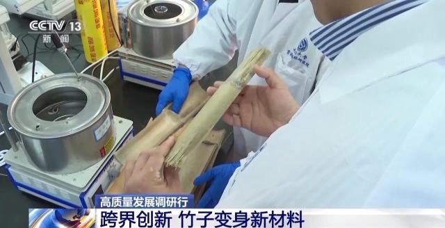 中南林业科技大学材料科学与工程学院院长李新功:竹子强度很高,它有很好的韧性,所以我们就想利用竹子这种天然材料,去做建筑材料,就可以助力实现“双碳战略”。