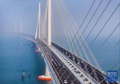 国家重大工程黄茅海跨海通道正式通车后,车辆行驶在黄茅海大桥上(2024年12月11日摄,无人机照片)。新华社记者 刘大伟 摄